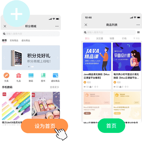 可DIY无限个自定义页面,一键切换首页,还可以随意连接至首页各个展示位,轻松实现多个自定义首页的效果。各个自定义页面还可一键设置为首页,一分钟轻松切换不同首页